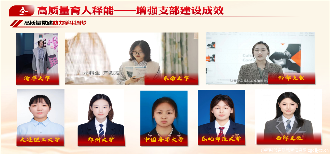 一是高质量党建助力学生圆梦。毕业生党员中,有保送至清华大学、东南大学、华东政法大学等高校的学生,2人加入研究生支教团,“到基层去、到西部去、到祖国最需要的地方去”建功立业。二是高质量党建引领学生成才。本年度,支部中有152人次获国家级、省市级及校级的各类竞赛奖项及荣誉称号,占全年级获奖总人数73%。三是高质量党建服务学生成长。打造“星期服务”理念,学生党员每周都有志愿服务活动,参与学生百余人次,低年级本科生受益面达到100%,支部春雨助学、信书心语项目获市级媒体报道,连续两年获蓝信封官方平台授予“优秀合作社团”荣誉称号。